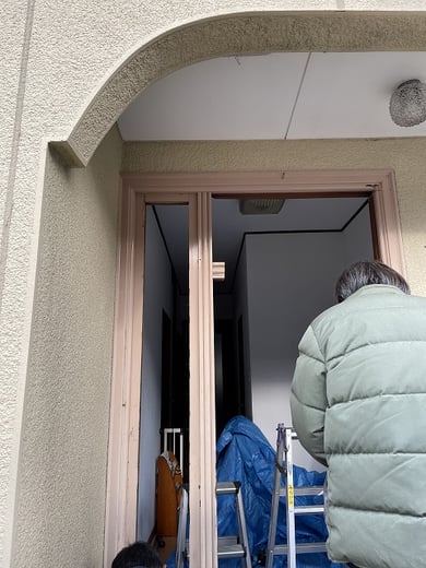 ドア枠上部にはまだ、以前のドア枠が見えています。