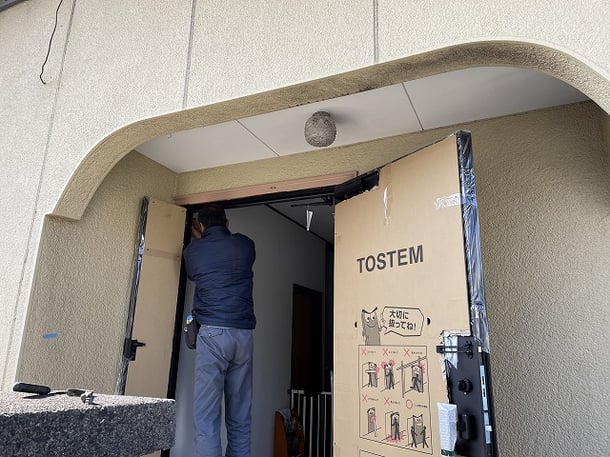 今回は、土間タイル補修や既存ドアの解体に時間がかかったので