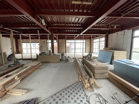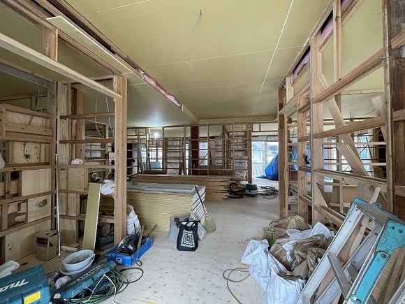 ちなみに中央、木の柱から奥は8畳~10畳の部屋が3部屋仕上がります。