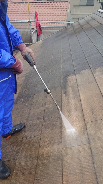 (施工中 屋根洗浄)