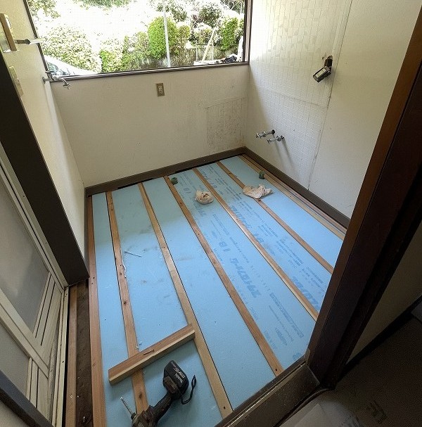 下に針葉樹合板、上にコンパネを張って頑丈に仕上げていきます。