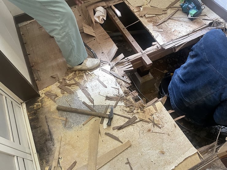 長年の湿気でブヨブヨしていて、厚手のマットや硬めのマットを敷いて